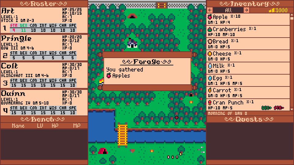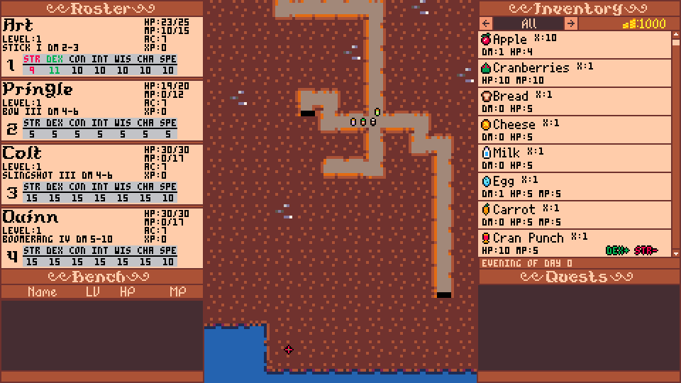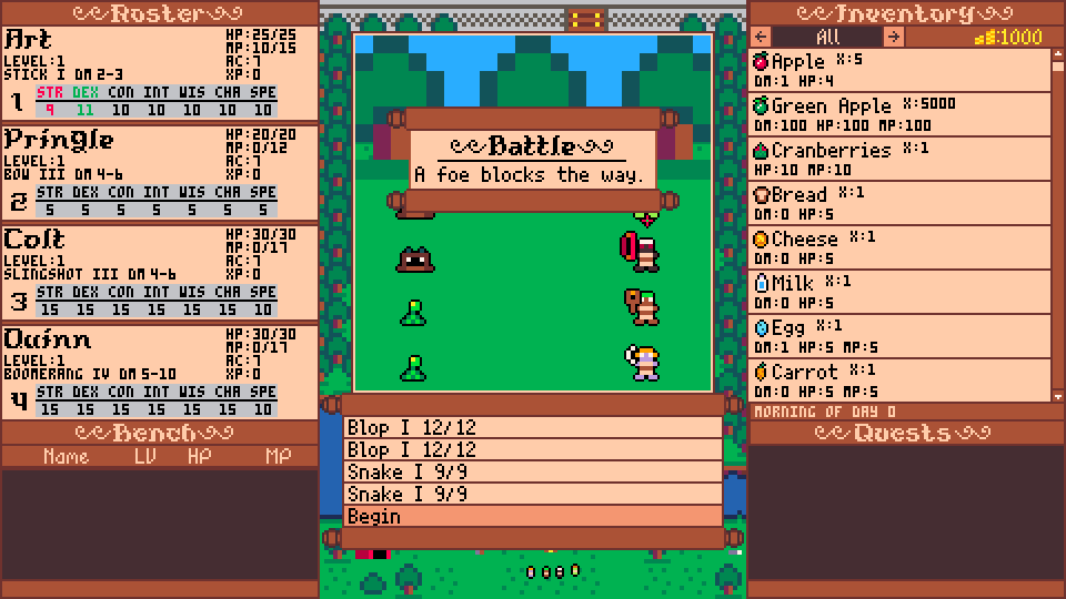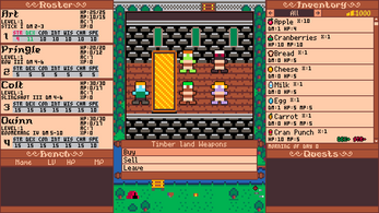 Shape your character through stats, equipment, and decisions as you explore forests, caves, and towns. Recruit allies, fight turn-based battles, and experiment with different playstyles, from heavy melee to magic and everything in between.